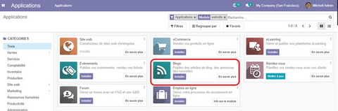 Pour pouvoir utiliser les fonctionnalités du Blog, nous devons tout d’abord installer le module Blog.