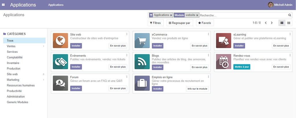 Odoo est un système composé de plusieurs applications parfaitement liées et synchronisées.