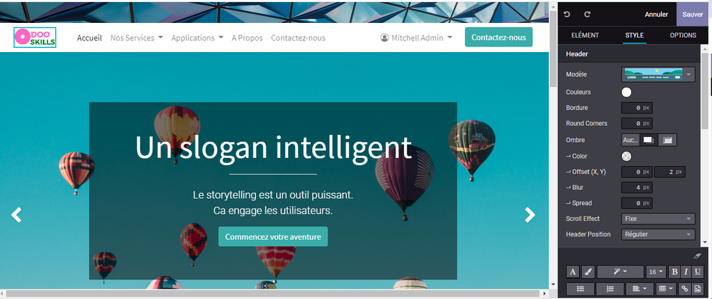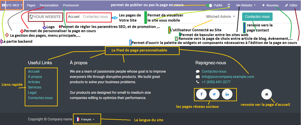 Dans ce qui suit, nous découvrirons les outils performants du CMS d’Odoo, qui nous permettront de gérer facilement notre contenu du site web.