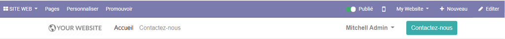 Le CMS Odoo, nous met à notre disposition en haut un menu, composé par les options nécessaires à la gestion de notre site web.