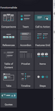 qui contiendra les éléments web nécessaires à la création des pages web, une simple opération de cliquer déplacer est votre composant ( banner, cover, image, comparaison,…) sera prêt à publier !