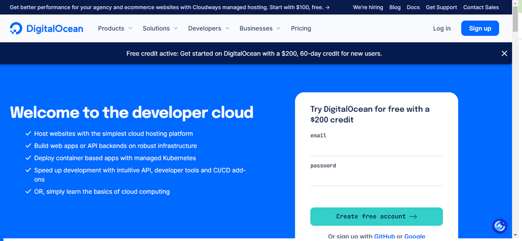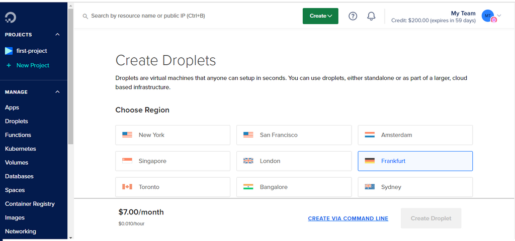 La première chose à faire consiste donc à s’inscrire sur leur site officiel, ou à travers le lien suivant 200 $ offert avec Digital ocean.