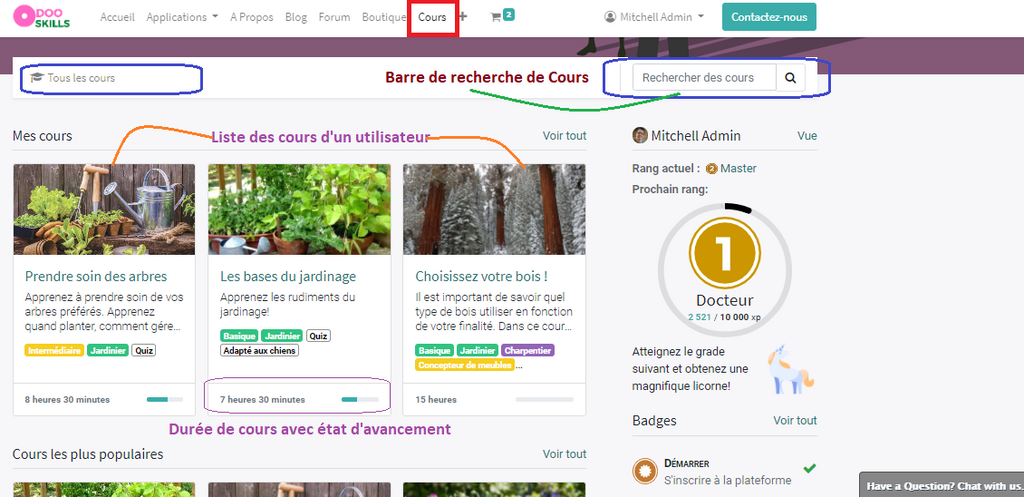 • Une jauge représentant l’état d’avancement sur ce cours si vous y êtes inscrit