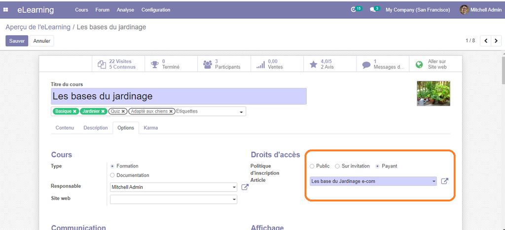 Gérer et publier des Cours en ligne avec la plateforme E-learning d’Odoo 14 Partie 2/2