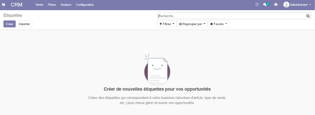 Configuration des étiquettes : Dans le menu CRM allez sur le sous menu Configuration - puis sur Étiquettes