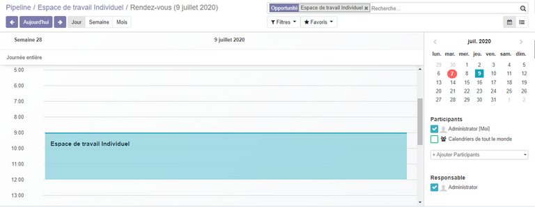 Ajouter une rendez vous à une opportunité : sur notre pipeline, cliquer sur l' opportunité Espace de travail individuel, dans le tableau de bord en haut à droite cliquer sur réunion, pour ajouter une nouvelle Réunion.