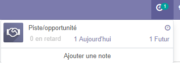 odoo affiche une alerte sur l'icone horloge en haut du menu , pour toute les activités qui sont en retard ou que la date de l'activité est Aujourd’hui .