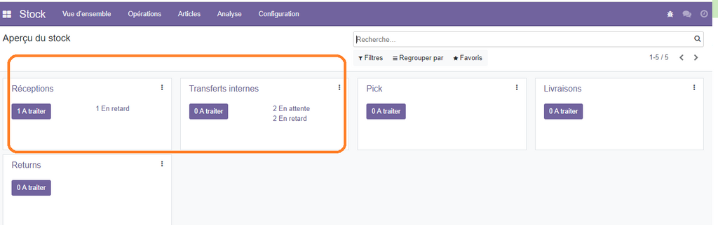 o Toujours dans le tableau de bord des opérations de stock cliquez sur le bouton à traiter sur l’opération transferts internes