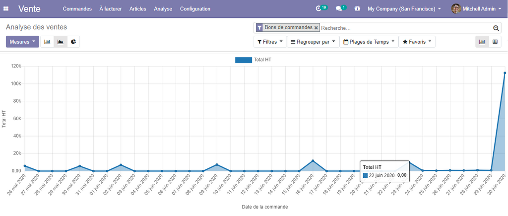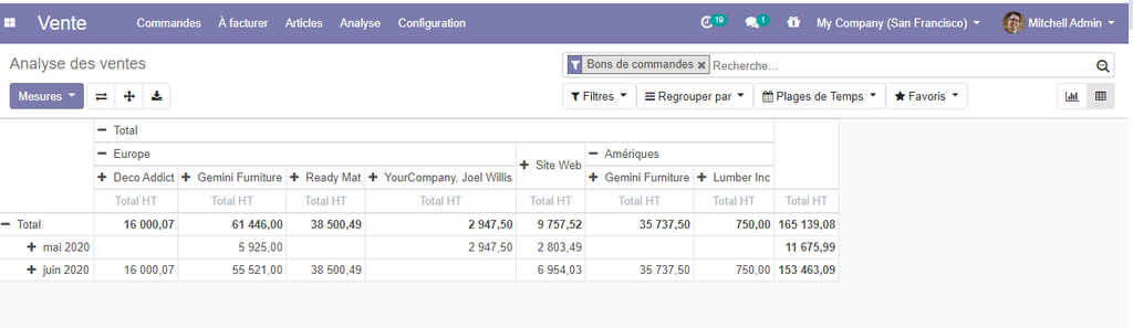 Pour que vous effectuer une analyse de vos ventes odoo vous propose principalement deux vues très importantes ( la vue graphe et la vue pivot) .