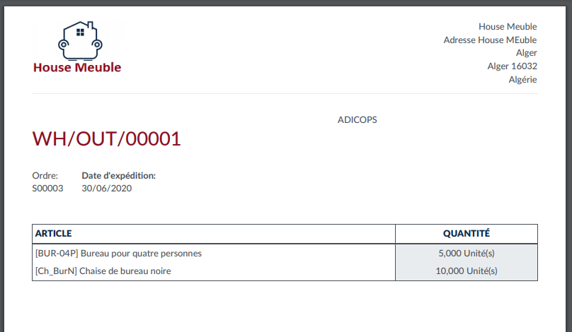 Dans notre exemple , nous allons choisir deux article, 05 Bureaux pour 04 personnes, et 10 chaise noir .