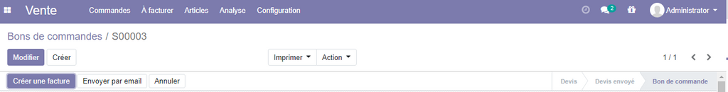 En validant la commande vous remarquer la création d'un nouveau bouton qui est crée une facture.