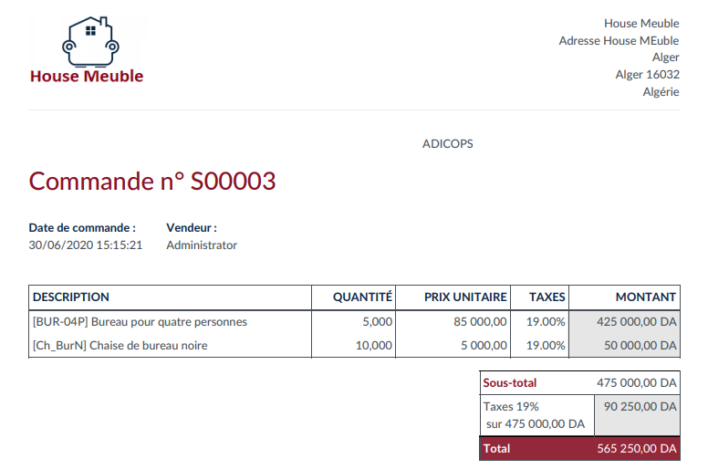 Les étapes de création de la commande sont les même du devis.