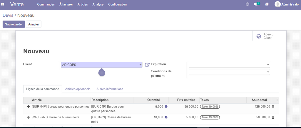 Dans notre exemple , puisque nous avons déjà, créé notre devis , on va l’utiliser pour éviter la répétition de saisie des information.