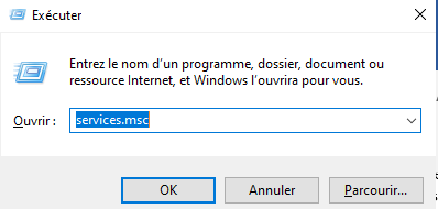 Pour vérifier l’état du service Odoo 14 et postgresql, taper simultanément sur la touche Démarrer+ R, puis saisir la commande services.msc , et cliquer sur OK.