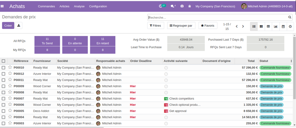 1- Plus rapide de 3.42  Par Rapport à Odoo 13 !