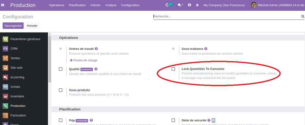 Possibilité de bloquer la modification de consommation sur un ordre de Fabrication dans la nomenclature