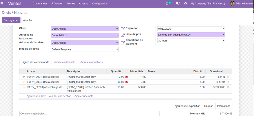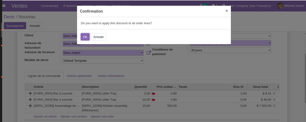 17- Possibilité d'appliquer une remise  total sur toute les lignes de la commande /devis.