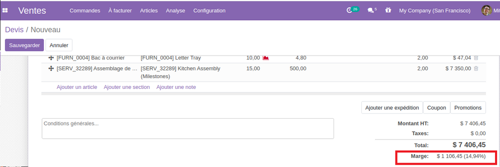 18- Affichage de la marge en montant et en pourcentage