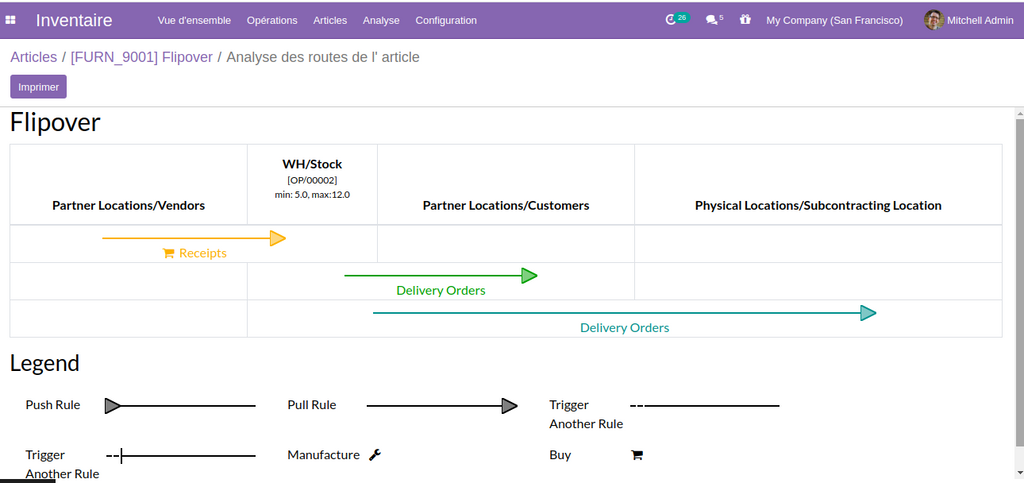 Présentation avec des diagrammes des routes de chaque produits , avec possibilité de l’imprimer