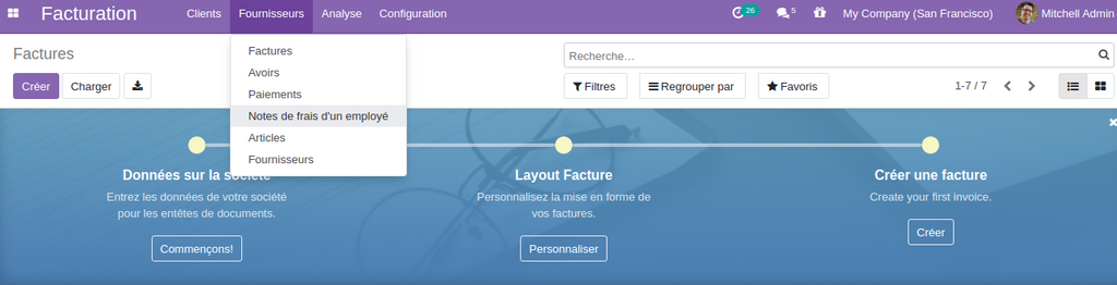 26- Il est possible de créer des notes  de frais  à partir du menu fournisseur .