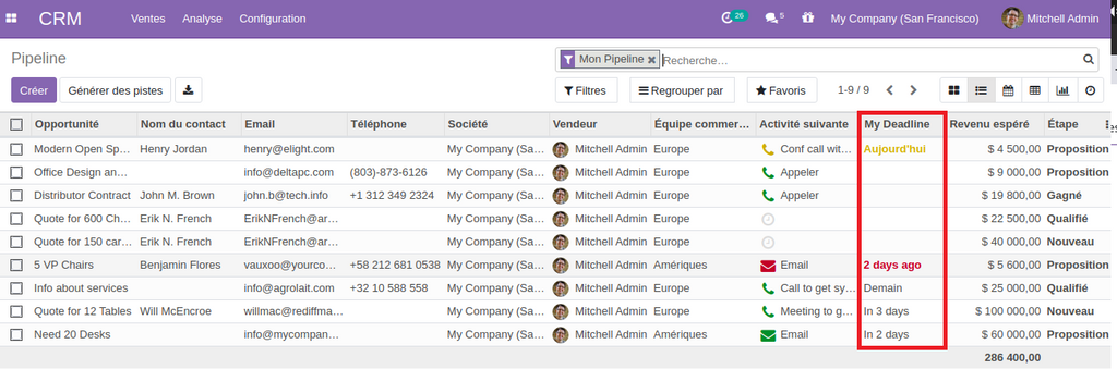 30-Vue liste : le nombre de journée restants (deadline)  (devis, achats,...)