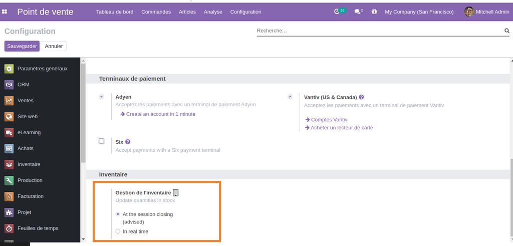 L’ajout de l’option qui permet de choisir entre la mise à jour momentané  du stock lors des opération de ventes, ou la mise à jour après la clôture de la session actuelle .