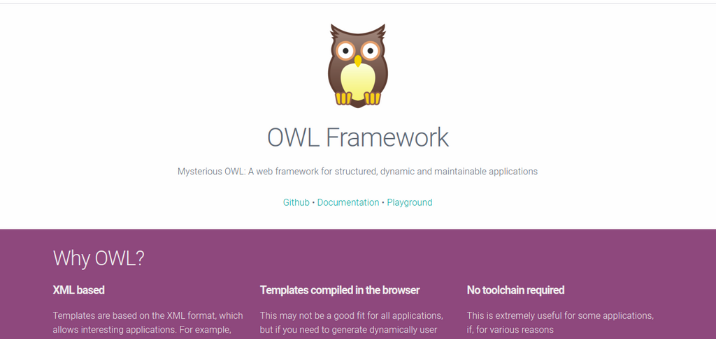 La bibliothèque Web Odoo (OWL) est un petit cadre d'interface utilisateur destiné à être la base du client Web Odoo. Owl est un framework moderne, écrit en Typescript, reprenant les meilleures idées de React et Vue d'une manière simple et cohérente.