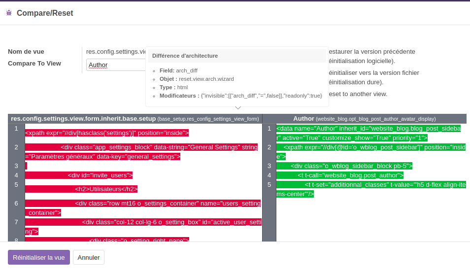 38- Pour les développeurs :  possibilité de comparer deux vues (Pour les développeurs)