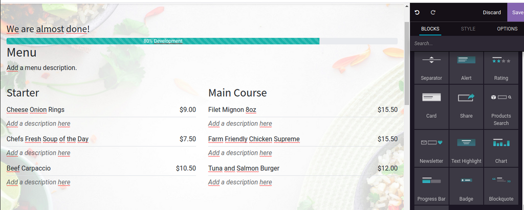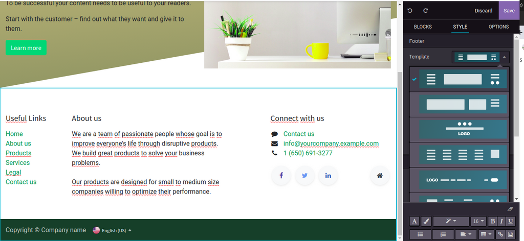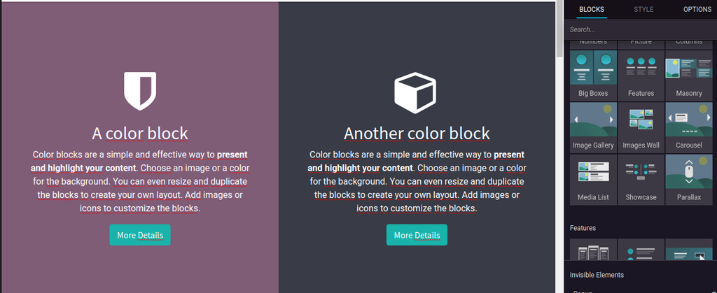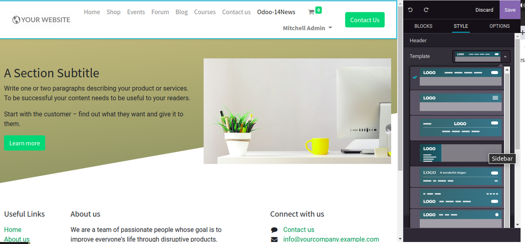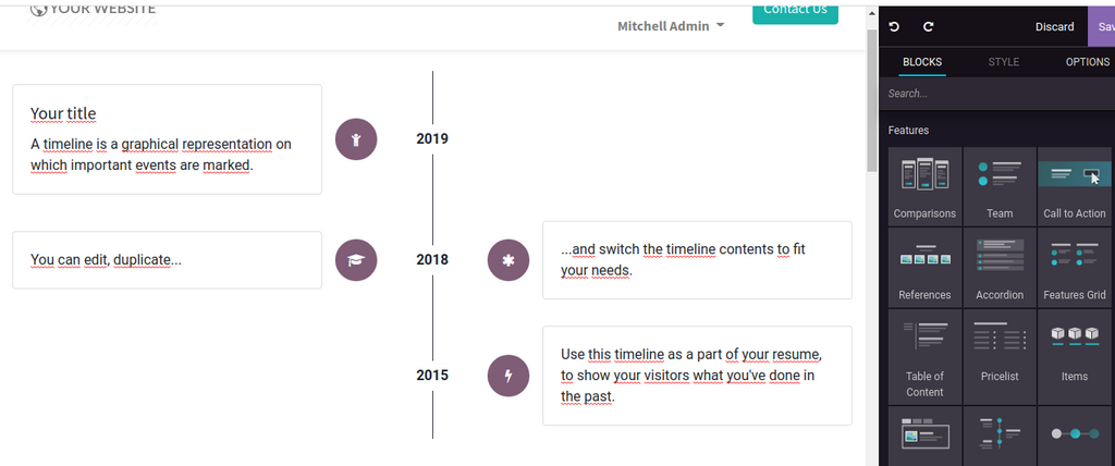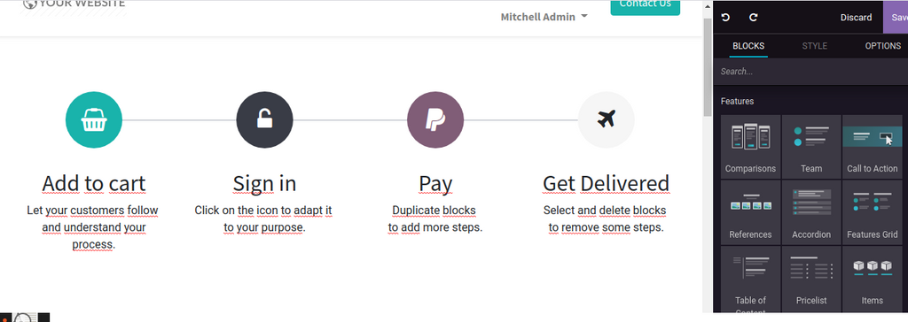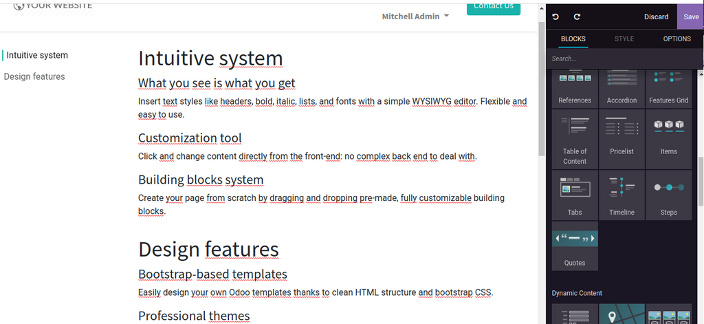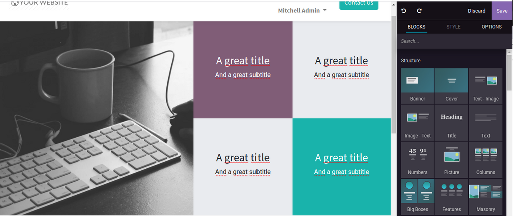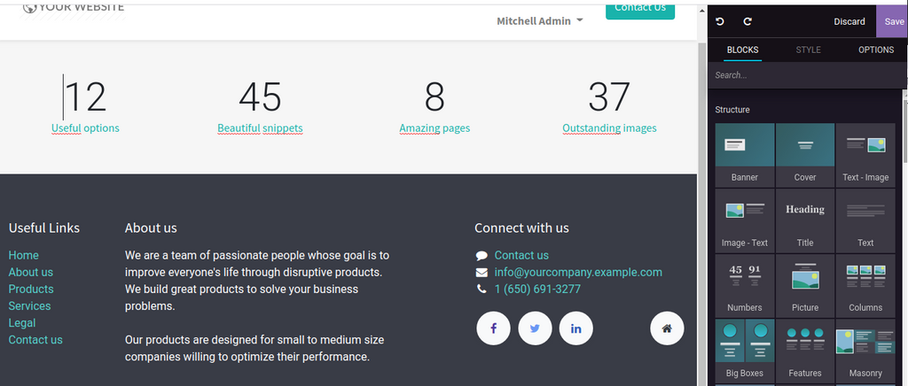 Plusieurs améliorations ont été apportés à la partie CMS odoo , qui permettent de créer des jolis sites web, sans être un designer.