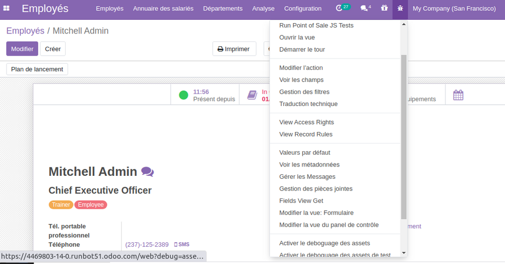 L’ajout du champs validation du Numéro de téléphone , depuis la vues des employés check the SMS Button Mobile (Employee)