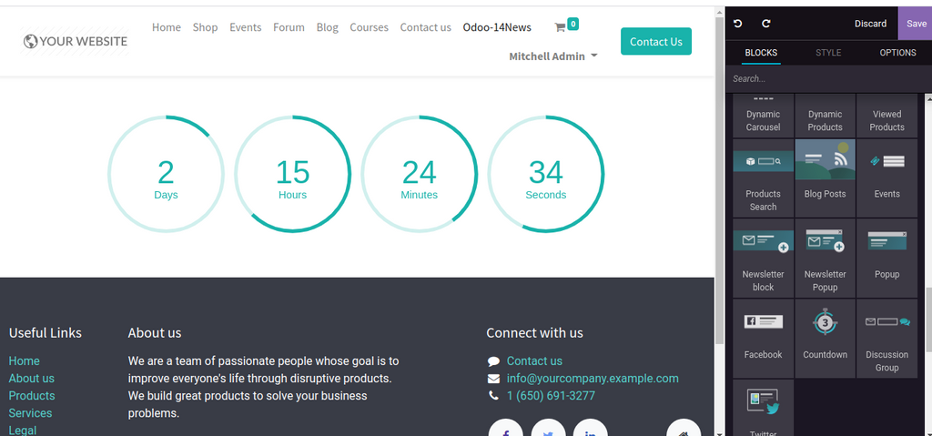 Ci-dessous une liste de  widgets et nouveautés apportés par Odoo Dans sa Version odoo 14 , dans la partie Site Web: