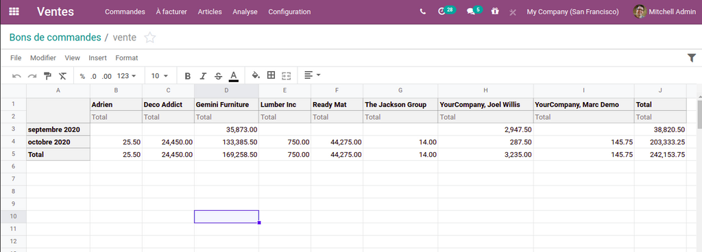 dans les tableaux de bords et d’analyses des différentes applications (CRM, Comptabilité, …) , qui permet de travailler sur la feuille de calcul (comme les feuilles Excel)  directement dans la plateforme , sans avoir à importer ou exporter les données .