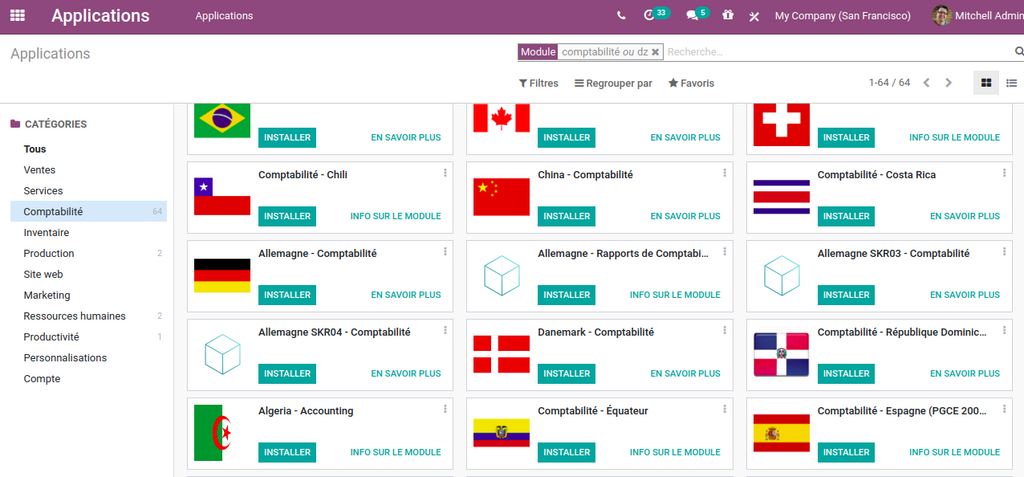 L’amélioration de la vue des applications à d’odoo à installer, en les  affichant par catégories, ce qui rend le choix et la sélection des application plus facile et rapide.