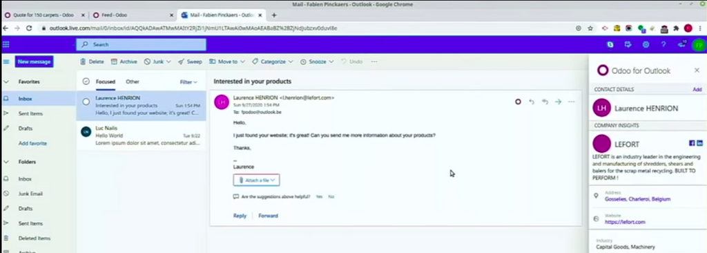 7- Connecteur Odoo - Outlook