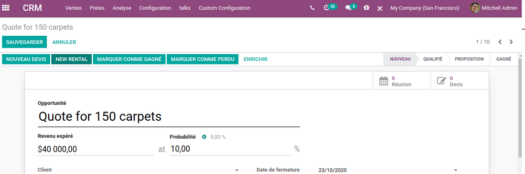 67- CRM: New rental à partir de l'opportunité