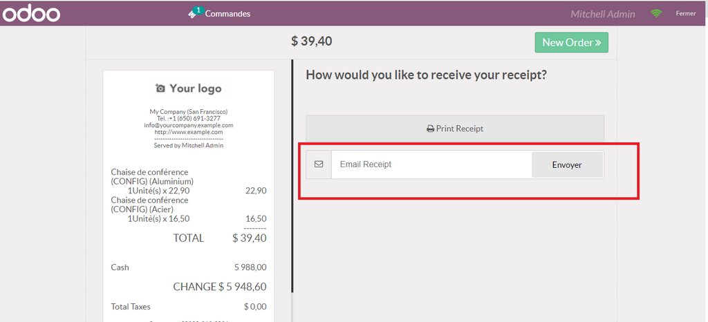 33- Application Point de Vente (POS):  Possibilité d’envoyer l’email de la commande  avant d’imprimer le bon au client encours