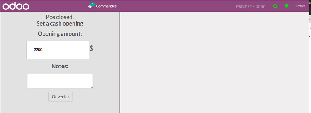 Point de Vente (POS)  : Lors de l'Ouverture  d’une  session, il est possible d’entrer la balance  d’ouverture .