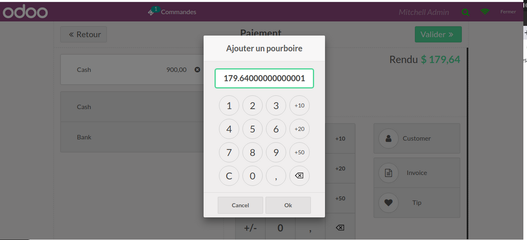 69 Point de Vente (POS)  :  Ajouter l’option  pourboire  (Tips) .