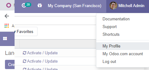 un message sera affiché vous indiquant que la langue est bien installé, il faut juste l'activer en allant en haut à droite , et cliquant sur l'image de notre utilisateur Michel admin, puis sur My profile , et cliquer sur Edit .